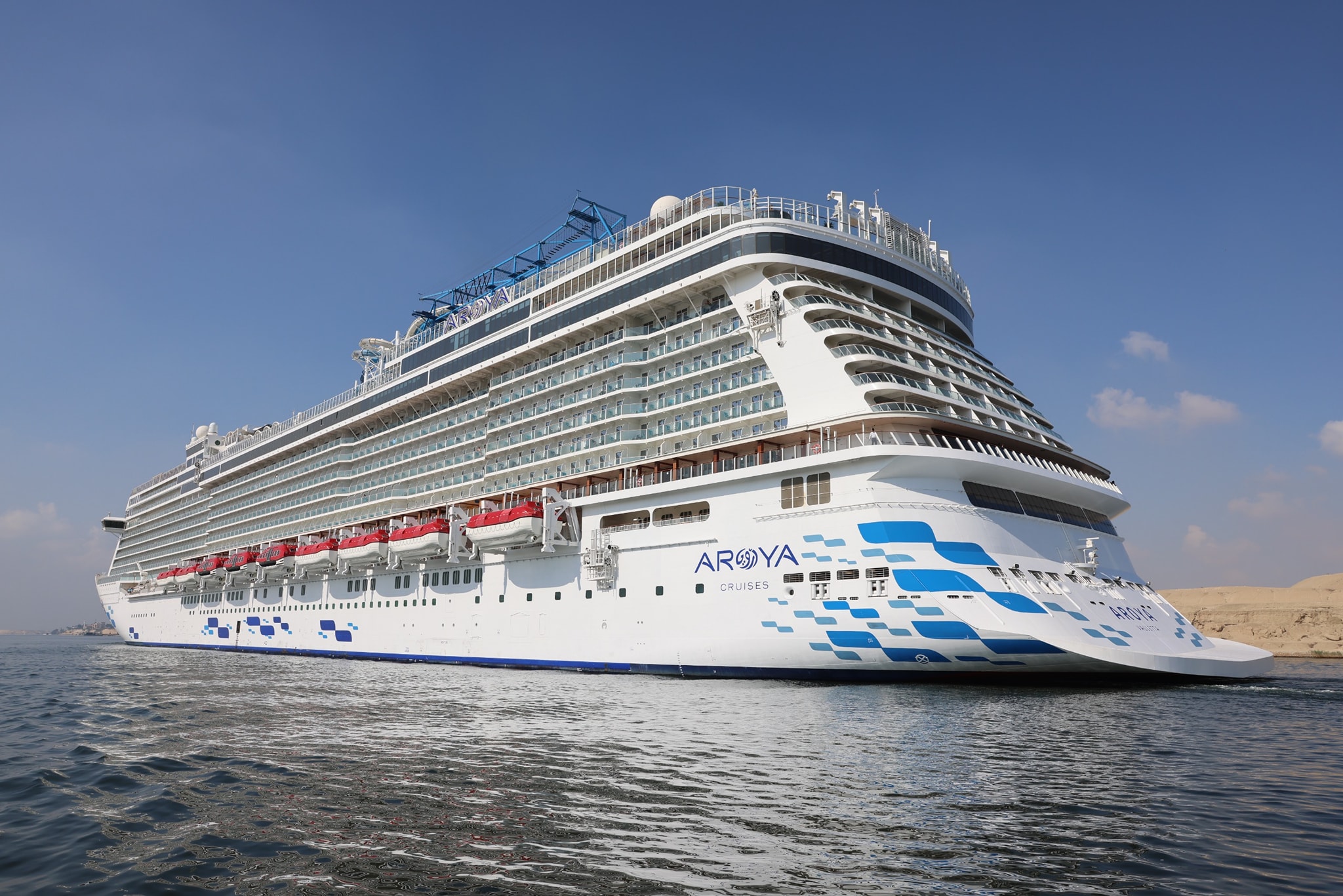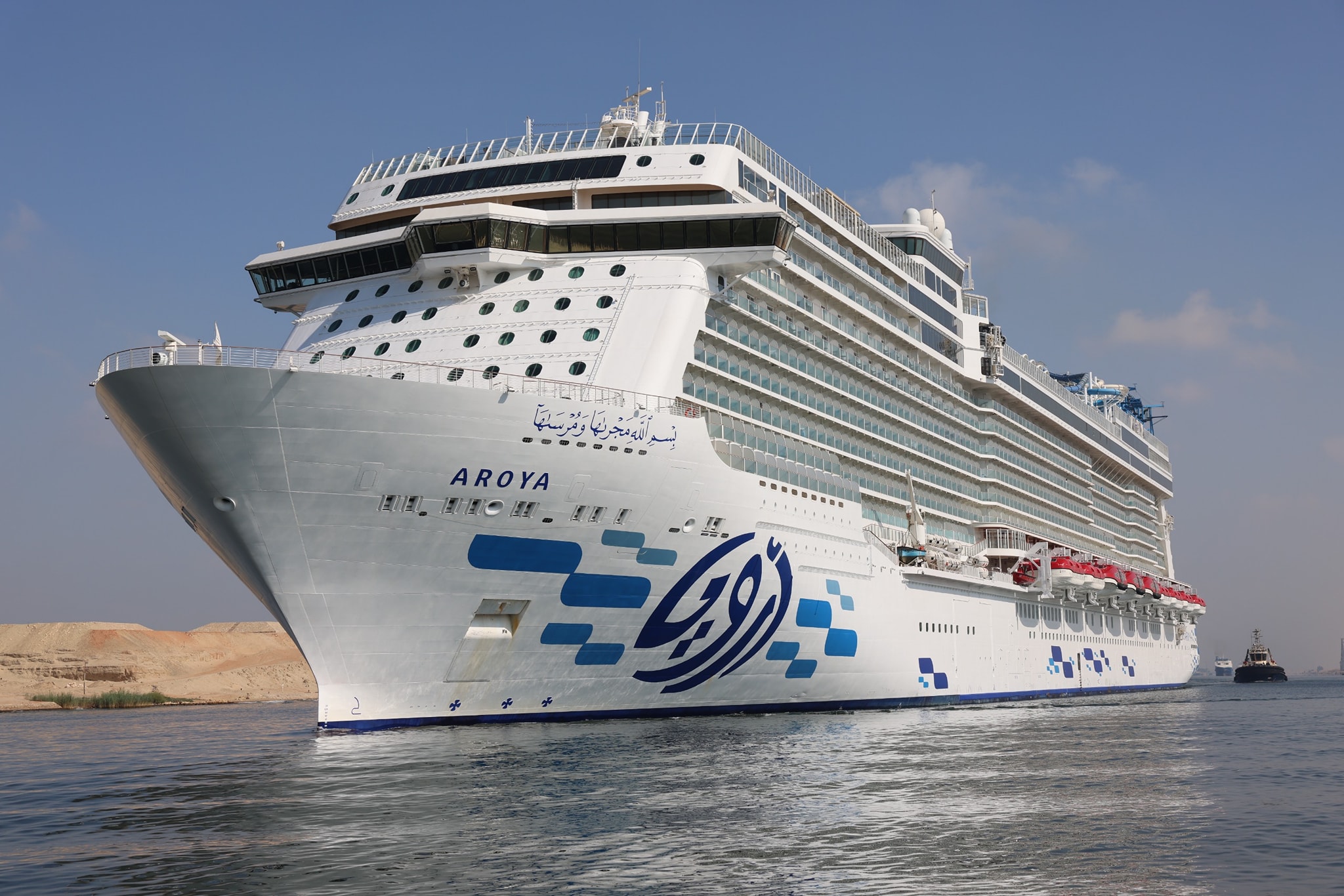 السفينة السياحية العملاقة "AROYA" تعبر قناة السويس وعلى متنها 2300 سائح متجهة إلى شرم الشيخ
