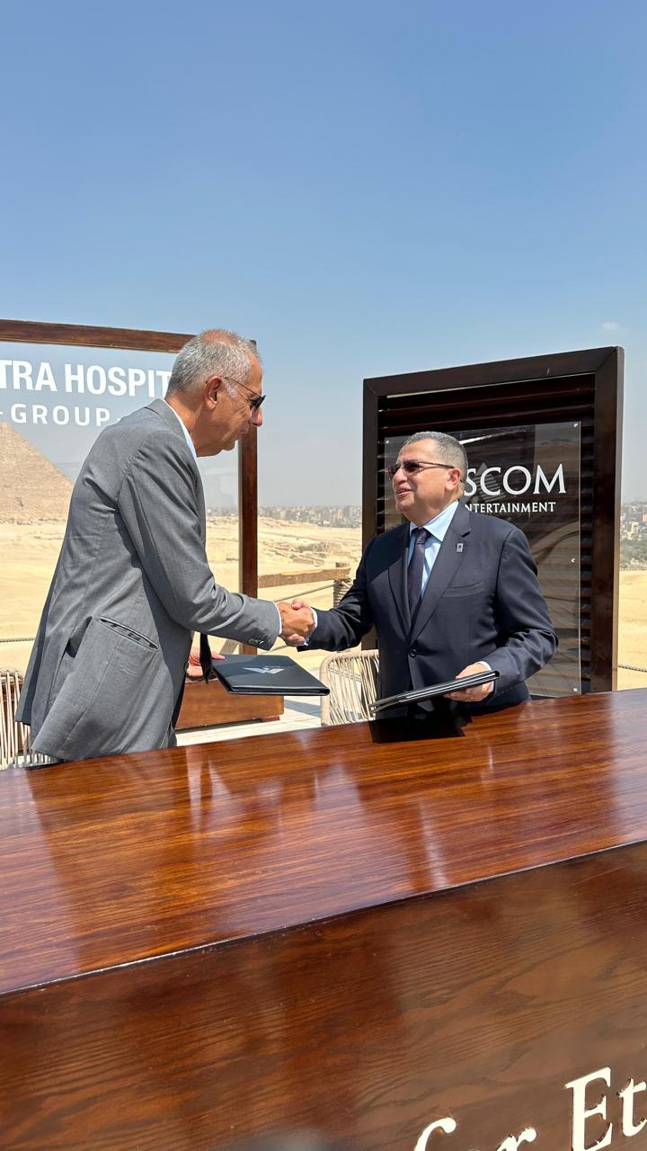 جدير بالذكر أن شركة أوراسكوم بيراميدز للمشروعات الترفيهية هي شركة مساهمة مصرية، تابعة لشركة أوراسكوم للاستثمار القابضة، وتعمل في مجال تطوير وإدارة وتشغيل المشروعات السياحية والترفيهية. وتقوم حاليًا بتطوير وتشغيل وتقديم الخدمات السياحية داخل منطقة الزيارة بهضبة أهرامات الجيزة، بموجب عقد انتفاع مع المجلس الأعلى للآثار لمدة 15 عاما.