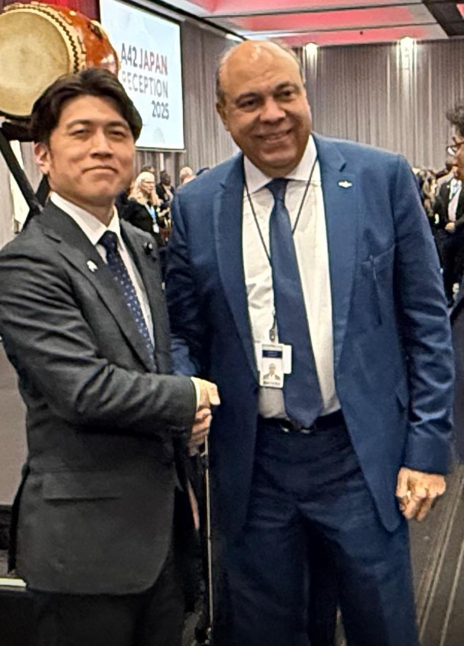 وفي لقاءه مع وزير الأراضي والبنية التحتية والنقل والسياحة في اليابان، تسويتومو سايتو، تم استعراض فرص العمل المشترك في التحول الرقمي وتطبيق الأنظمة الذكية بالنقل الجوي، إضافة إلى تبادل الخبرات التقنية. وأعرب الوزير الياباني عن تطلع بلاده إلى تنمية العلاقات مع مصر بما يخدم المصالح الاقتصادية والسياحية للجانبين.