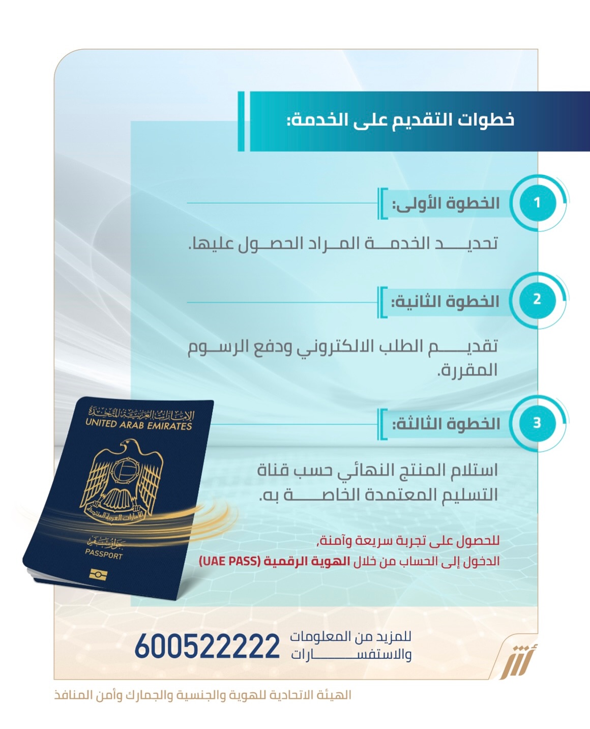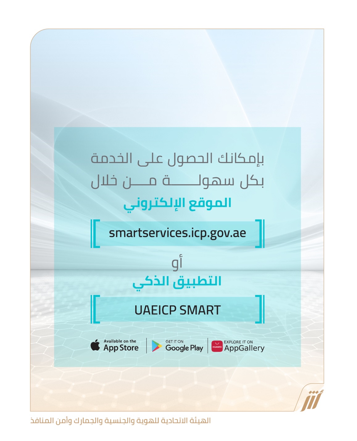 وأكدت الهيئة أنه بإمكان المتعاملين الحصول على الخدمة بسهولة عبر الموقع الإلكتروني smartservices.icp.gov.ae، أو من خلال التطبيق الذكي UAEICP SMART المتاح على متاجرApp Store ،Google Play وAppGallery .
