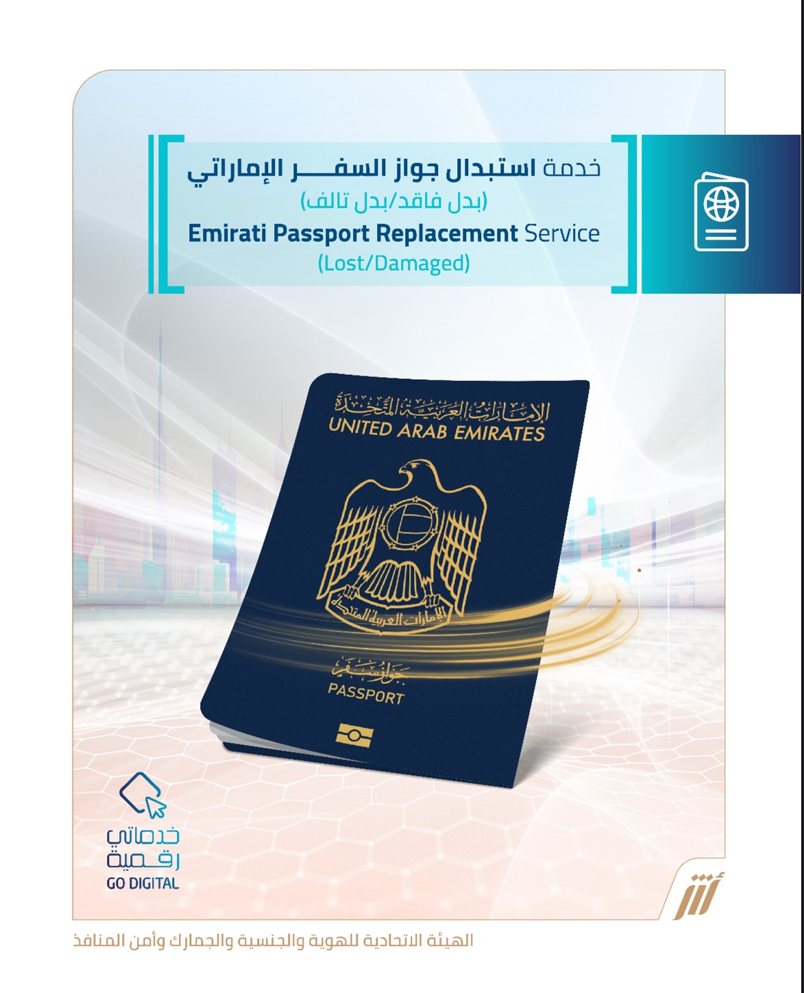 أعلنت الهيئة الاتحادية للهوية والجنسية والجمارك وأمن المنافذ في الإمارات عن توفير خدمة استبدال جواز السفر الإماراتي بدل فاقد أو بدل تالف بشكل إلكتروني، بهدف تسهيل الإجراءات وتسريع الحصول على الوثائق الرسمية.