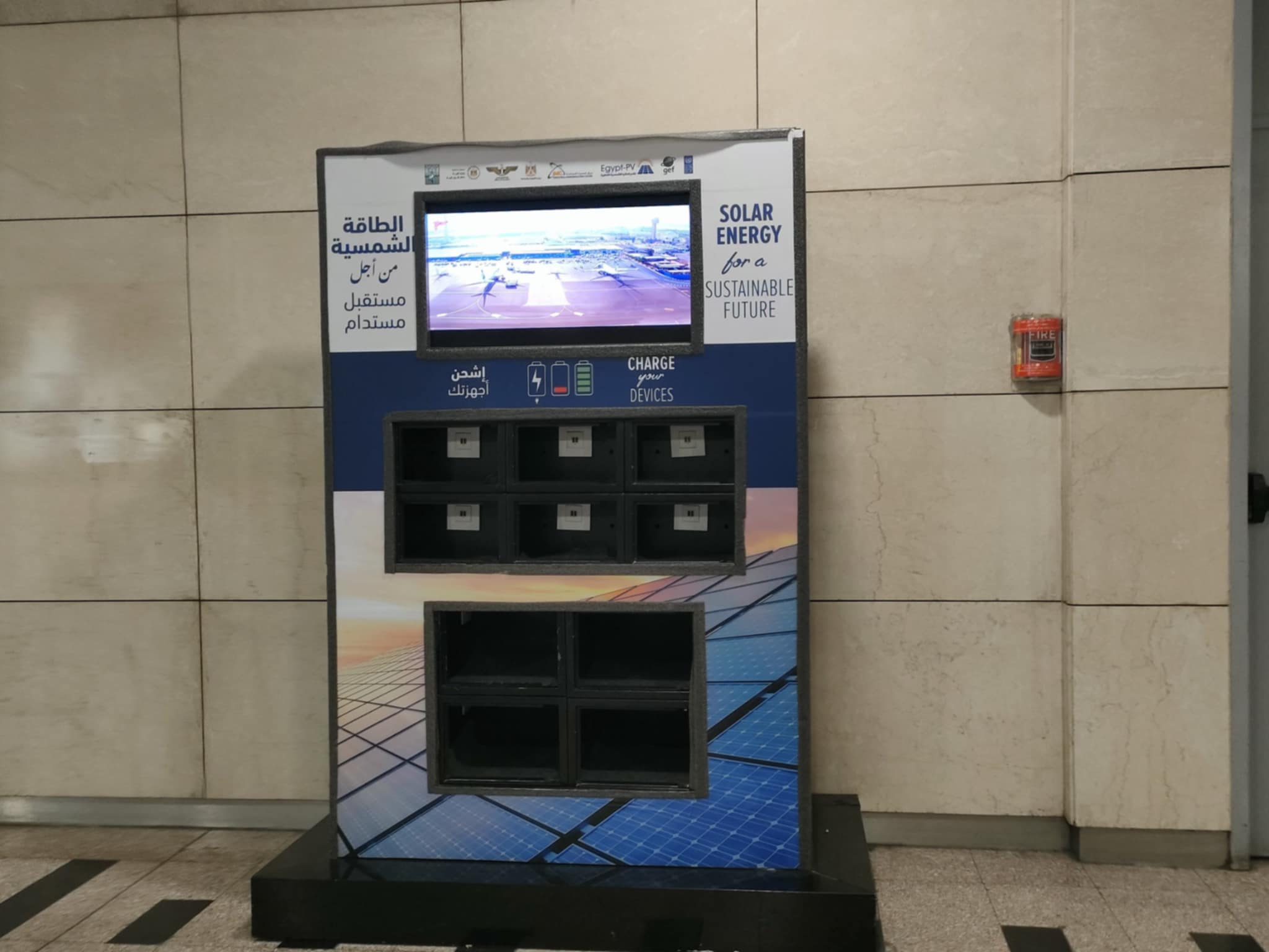 كما تم تجهيز الحوائط والطاولات في أنحاء المطار بوحدات شحن إضافية وتركيب عدد من أجهزة الشحن التي تعمل بالطاقة الشمسية، بما يجعلها صديقة للبيئة، لتلبية احتياجات المسافرين في شحن أجهزتهم الإلكترونية بسهولة أثناء تواجدهم في المطار.