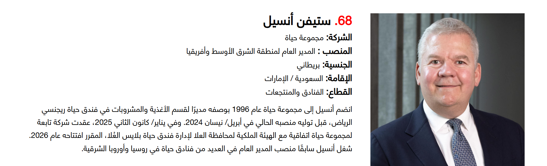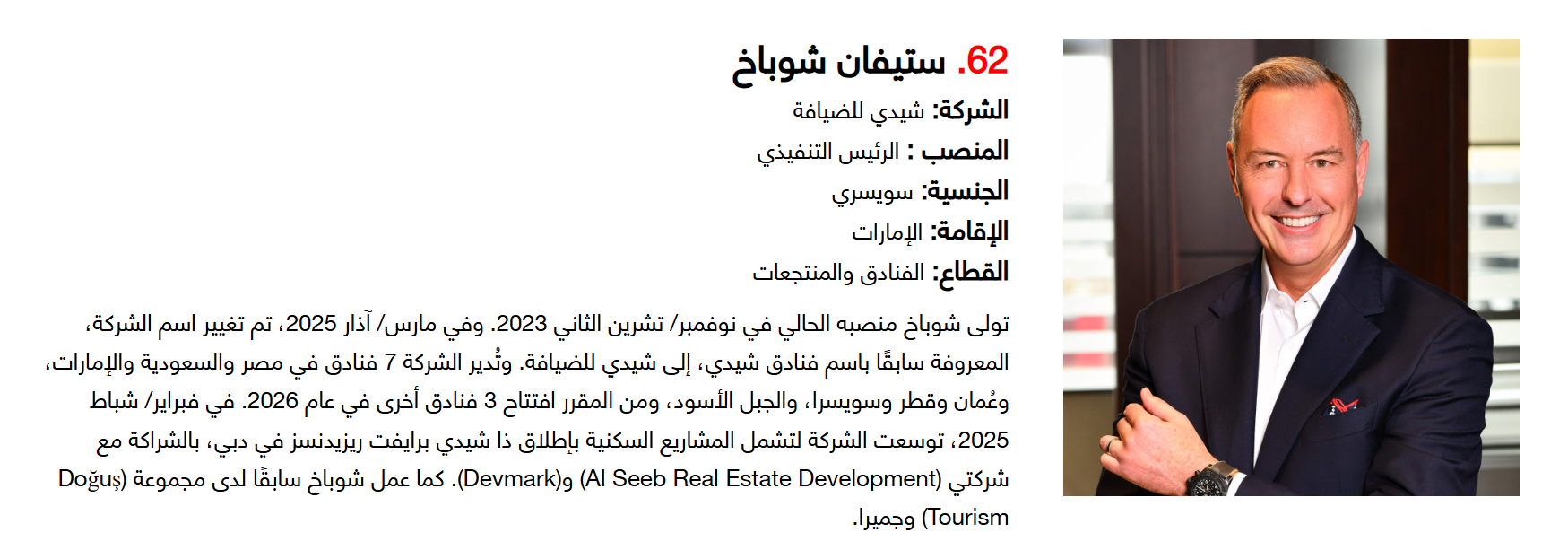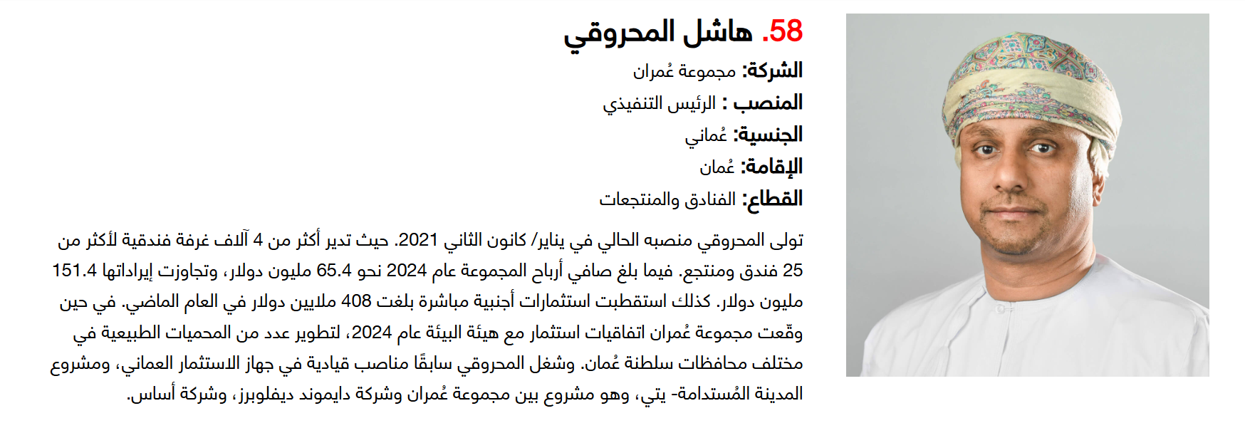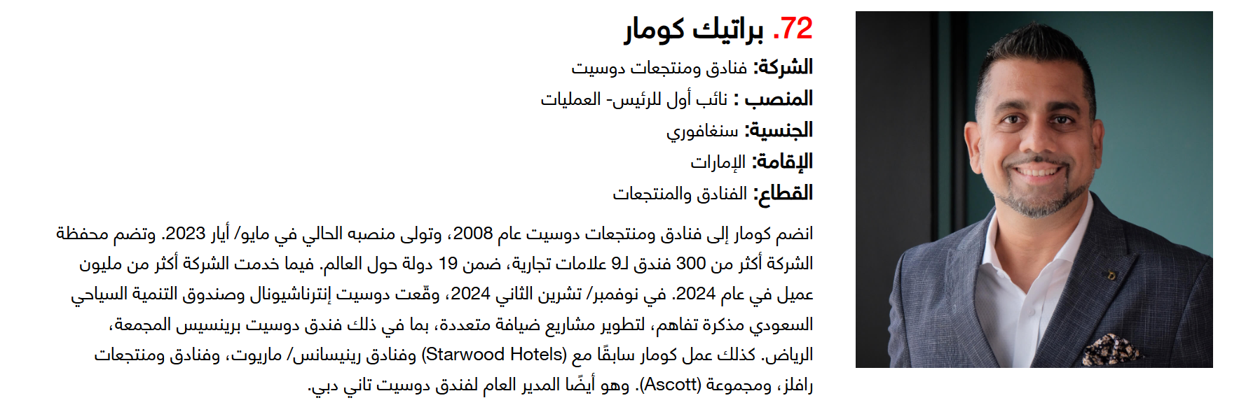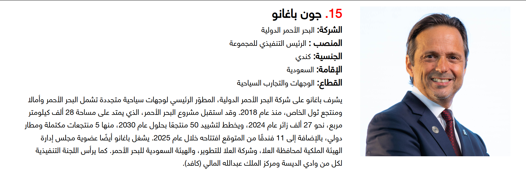 وتضم القائمة 100 شخصية قيادية تدير كبرى المشروعات في مجالات الضيافة والوجهات السياحية وسلاسل الفنادق والمطارات وشركات الطيران وخدمات السفر والمبادرات السياحية المبتكرة. وجاء التصنيف استنادا إلى حجم أعمال الشركات، قيم الأصول، وعدد الفنادق والغرف وأعداد الزوار، إضافة إلى الخبرات المهنية والإنجازات والتأثير في المشهد السياحي الإقليمي.