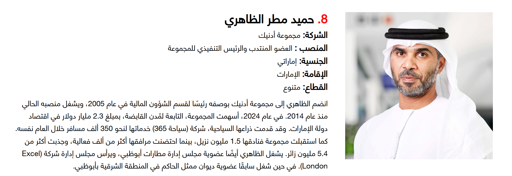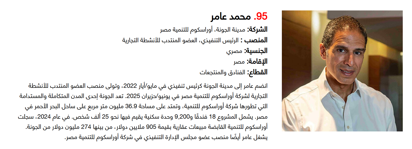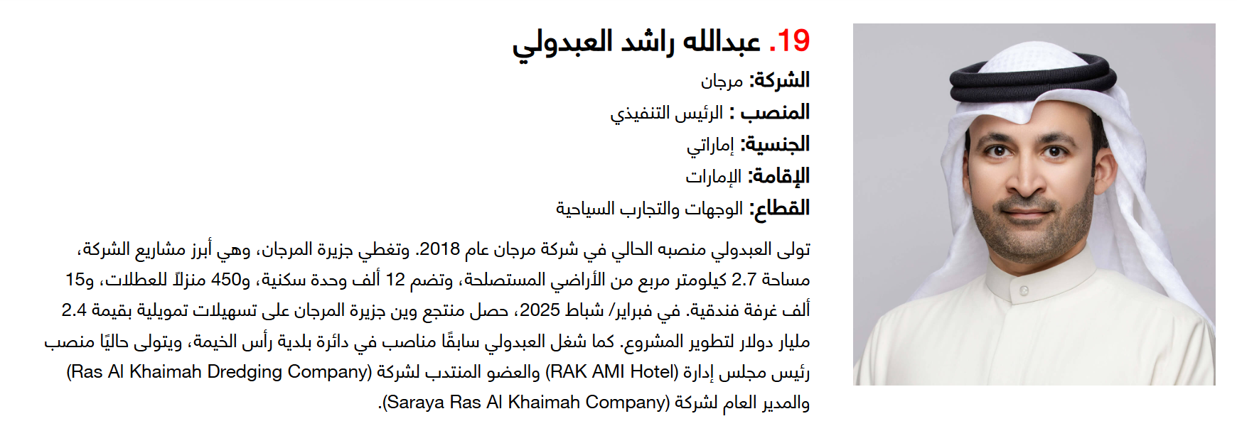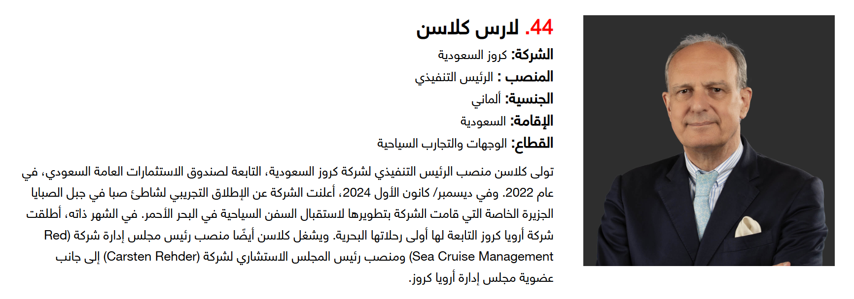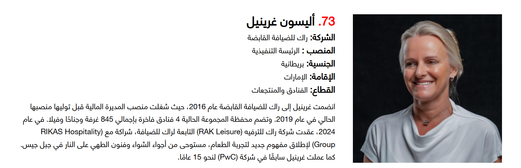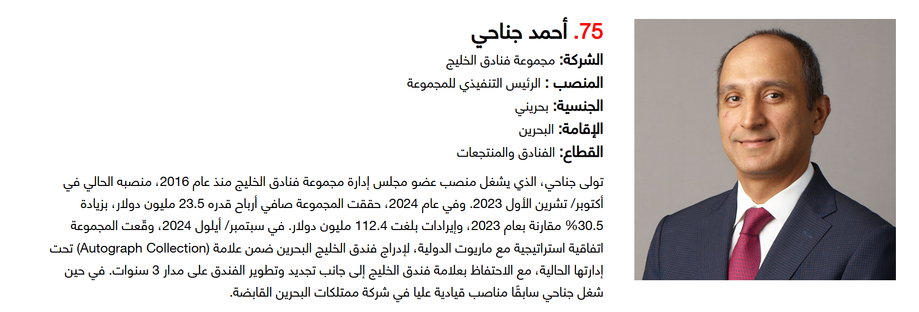 وتضم القائمة 100 شخصية قيادية تدير كبرى المشروعات في مجالات الضيافة والوجهات السياحية وسلاسل الفنادق والمطارات وشركات الطيران وخدمات السفر والمبادرات السياحية المبتكرة. وجاء التصنيف استنادا إلى حجم أعمال الشركات، قيم الأصول، وعدد الفنادق والغرف وأعداد الزوار، إضافة إلى الخبرات المهنية والإنجازات والتأثير في المشهد السياحي الإقليمي.