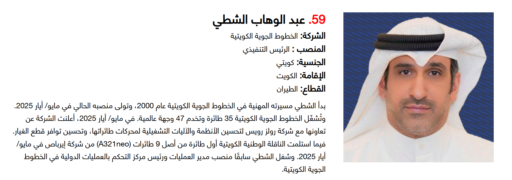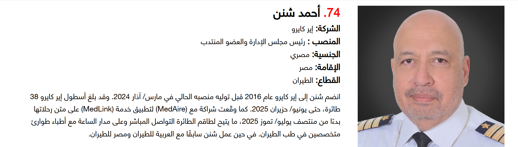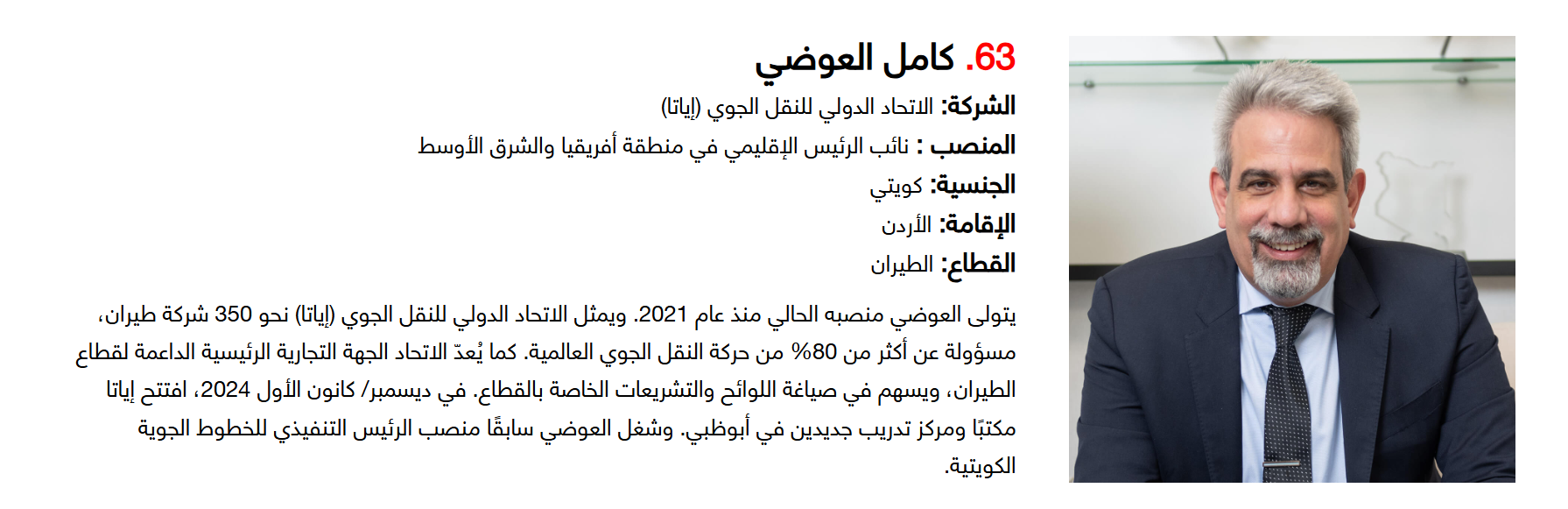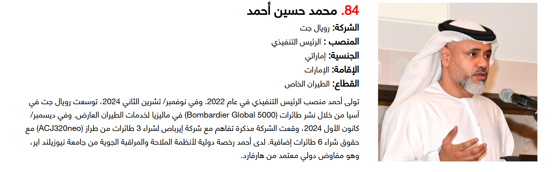 أما على صعيد الجنسيات، فقد تصدر الإماراتيون القائمة بـ15 قائدا، تلاهم السعوديون بـ14 قائدا، ثم البريطانيون بـ9 قادة، لتشكل هذه الجنسيات الـ3 النسبة الأكبر ضمن التصنيف.