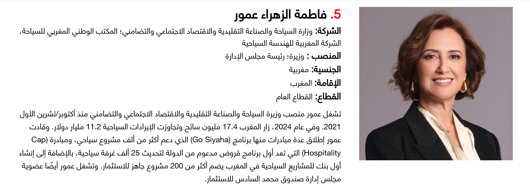 وفي المغرب، أشرفت فاطمة الزهراء عمور، وزيرة السياحة والصناعة التقليدية والاقتصاد الاجتماعي والتضامني، على تأسيس أول بنك للمشاريع السياحية في البلاد، يضم أكثر من 200 مشروع جاهز للاستثمار.